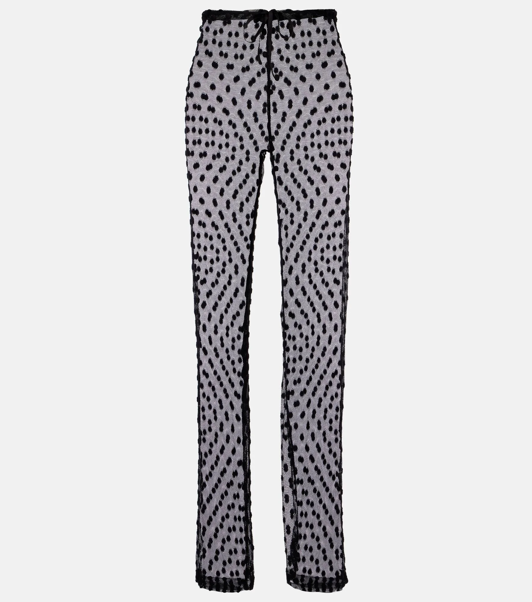 You can always count on Dries Van Noten for sophisticated styles, like these slim pants. They're made from mesh for a sheer effect and feature an all-over polka-dot motif. Product Details - Material: 66% cotton, 34% polyamide - Care instructions: dry clean - Made in Tunisia - Color: black - Designer color name: Black - Elasticated drawstring waist - Item number: P01152055 Size & Fit - True to size - Sheer - Adjustable at the waist - Non-stretchy fabric - Slim-leg - The model seen in the picture is 178cm-5'10" and wearing a size FR 36