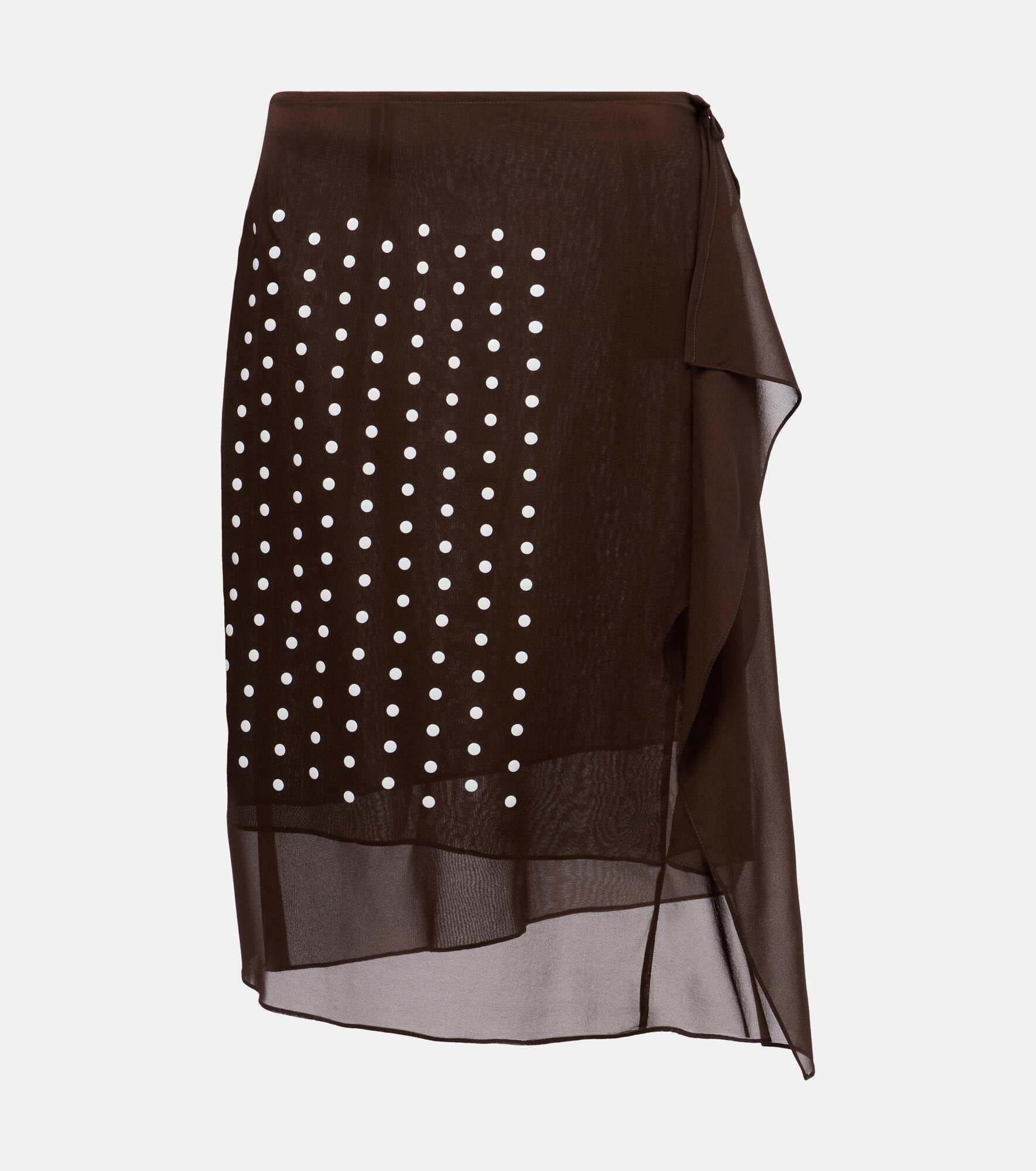 Dries Van Noten's prints are often abstract, overtly maximalist, and always one-of-a-kind. Crafted from a lightweight silk blend, this midi skirt features an asymmetric silhouette and an allover polka-dot pattern. Product Details - Material: 94% silk, 6% elastane - Care instructions: dry clean - Made in Poland - Designer color name: Brown - Item color: brown - Item number: P01056899 Size & Fit - True to size - Adjustable at the waist - Non-stretchy fabric - The model seen in the picture is 178cm-5'10" and wearing a size FR 36