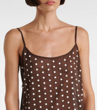 Charming yet effortless, this tank top from Dries Van Noten is an elegant addition to your collection. Made from a soft silk blend, this semi-sheer style is complete with spaghetti straps and an all-over polka-dot pattern. Product Details - Material: 94% silk, 6% elastane - Care instructions: dry clean - Made in Bulgaria - Designer color name: Brown - Item color: brown - Item number: P01056601 Size & Fit - True to size - Semi-sheer - Straight fit - Slightly stretchy fabric - Slightly cropped - The model seen in the picture is 178cm-5'10" and wearing a size FR 36
