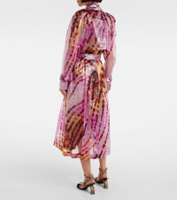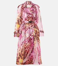 Dries Van Noten's prints are often abstract, overtly maximalist, and always one-of-a-kind. Case in point is this double-breasted trench coat, emblazoned with a striking, stop-and-stare print. Product Details - Material: 55% polyamide, 45% silk - Care instructions: dry clean - Made in Poland - Designer color name: Fuchsia - Closure: double-breasted (six buttons) - Pockets: side slit pockets - Belt loops - Detachable band - Item number: P01030362 Size & Fit - True to size - Semi-sheer - Loose fit, comes with belt - Non-stretchy fabric - slit length 49cm-19.5" - The model seen in the picture is 178cm-5'10" and wearing a size XS