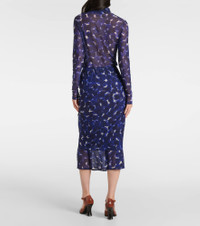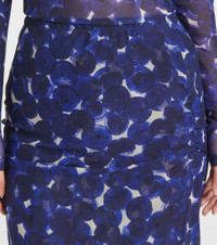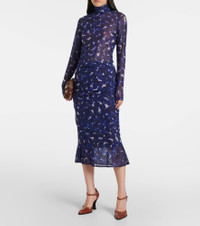 Printed gathered jersey midi skirt