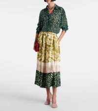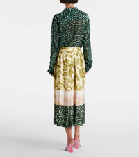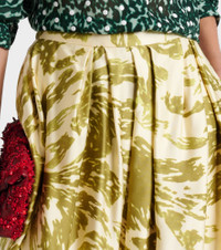 Dries Van Noten's prints are often abstract, overtly maximalist, and always one-of-a-kind. This satin skirt features a striking print and falls to a midi length. Product Details - Material: 100% viscose - Care instructions: dry clean - Made in Bulgaria - Designer color name: Khaki - Item color: green, multicolor - Closure: zipped side - Pockets: side slit pockets - Item number: P01056890 Size & Fit - True to size - Non-stretchy fabric - The model seen in the picture is 178cm-5'10" and wearing a size FR 36
