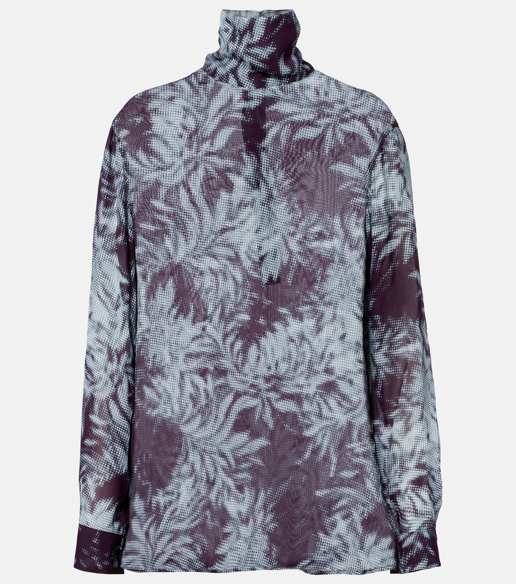 Dries Van Noten's prints are often abstract, overtly maximalist, and always one-of-a-kind. Made from chiffon, this printed turtleneck blouse is a finely crafted example, trimmed with delicate buttons running down the back. Product Details - Material: 100% viscose - Care instructions: dry clean - Made in Hungary - Designer color name: Burgundy - Item color: blue, purple - Collar: turtleneck - Closure: buttoned back - Cuff: buttoned - Hem: rounded - Item number: P01106635 Size & Fit - True to size - Dropped shoulders - Designed for a loose fit - Non-stretchy fabric - Falls below the hip - The model seen in the picture is 178cm-5'10" and wearing a size FR 36