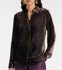 Dries Van Noten brings an artful, inimitable perspective to womenswear, defined by discerning palettes and innovative cuts. This velvet shirt showcases a Tie print and a subtle Argyle pattern for an elegant finish. Product Details - Material: 82% viscose, 18% silk - Care instructions: dry clean - Made in Tunisia - Designer color name: Khaki - Item color: multicolor - Closure: concealed button placket - Collar: classic (Straight point) - Cuff: buttoned - Item number: P01092119 Size & Fit - True to size - Straight fit - Non-stretchy fabric - Falls below the hip - The model seen in the picture is 178cm-5'10" and wearing a size FR 36