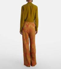 Critically acclaimed Belgian designer Dries Van Noten brings an inimitable, artful vision to fashion. These flowy wide-leg pants showcase a vibrant print, effortlessly combining casual ease with elevated style. Product Details - Material: 52% acetate, 48% viscose - Care instructions: dry clean - Made in Romania - Designer color name: Orange - Item color: orange, green - Elasticated drawstring waist - Pockets: side slit pockets - Single pleat - Item number: P01092146 Size & Fit - True to size - Elasticated waist - Adjustable at the waist - Non-stretchy fabric - Wide-leg - The model seen in the picture is 178cm-5'10" and wearing a size FR 36