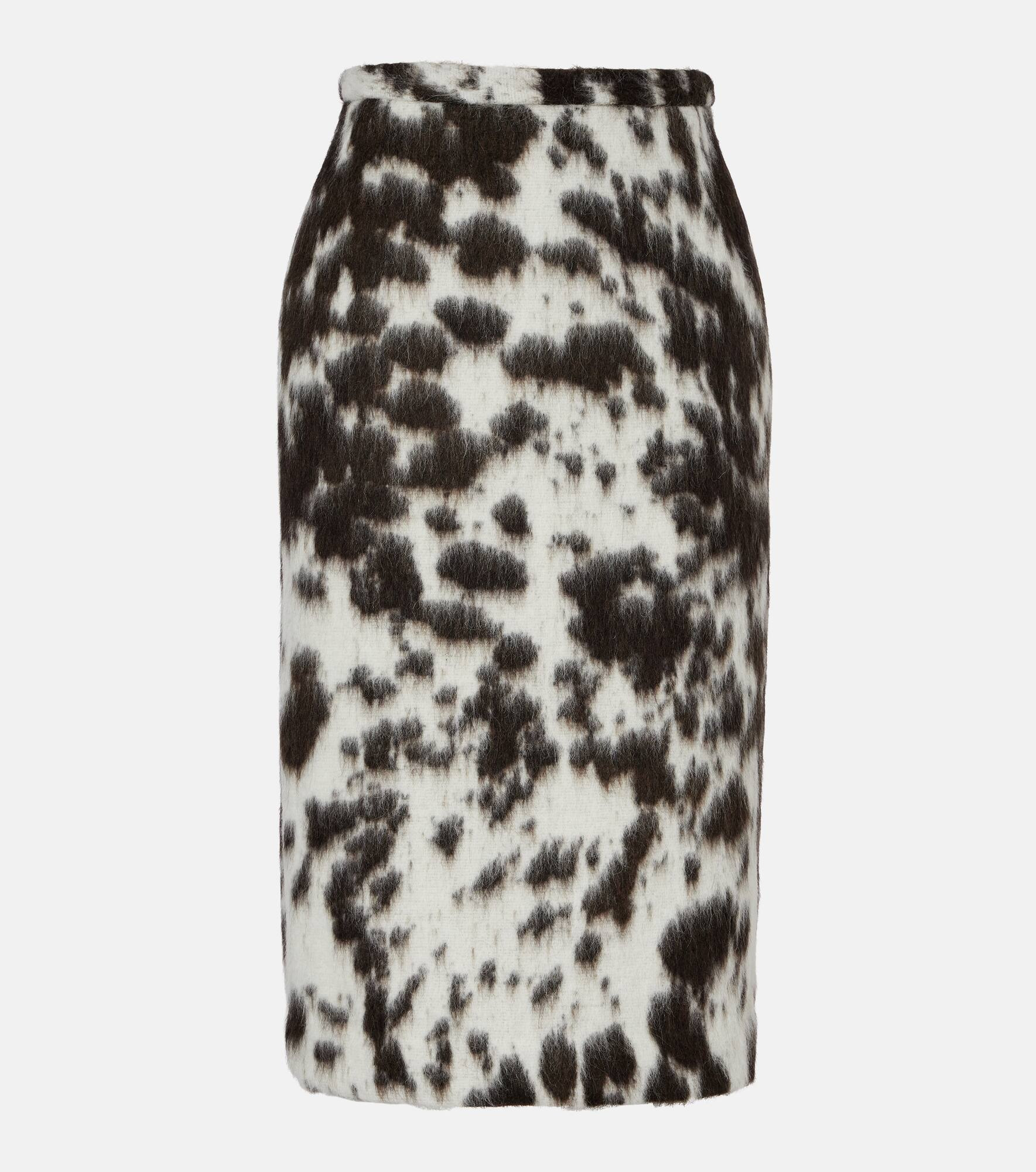 Printed wool-blend midi skirt