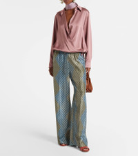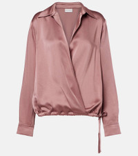 This warp top from Dries Van Noten is crafted from satin and features a long-sleeved, slightly cropped silhouette. The design comes in a light pink hue and features a drawstring at the waist for a customizable fit. Product Details - Material: 73% acetate, 27% viscose - Care instructions: dry clean - Made in Hungary - Designer color name: Old Rose - Item color: pink - Cuff: buttoned - Drawstring waist - Item number: P01092130 Size & Fit - True to size - Designed for a loose fit - Adjustable hem - Non-stretchy fabric - Falls to the hip - The model seen in the picture is 178cm-5'10" and wearing a size FR 36