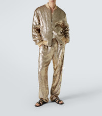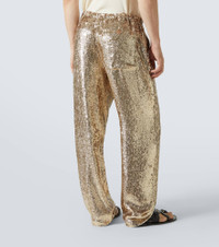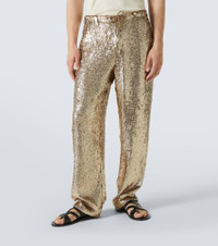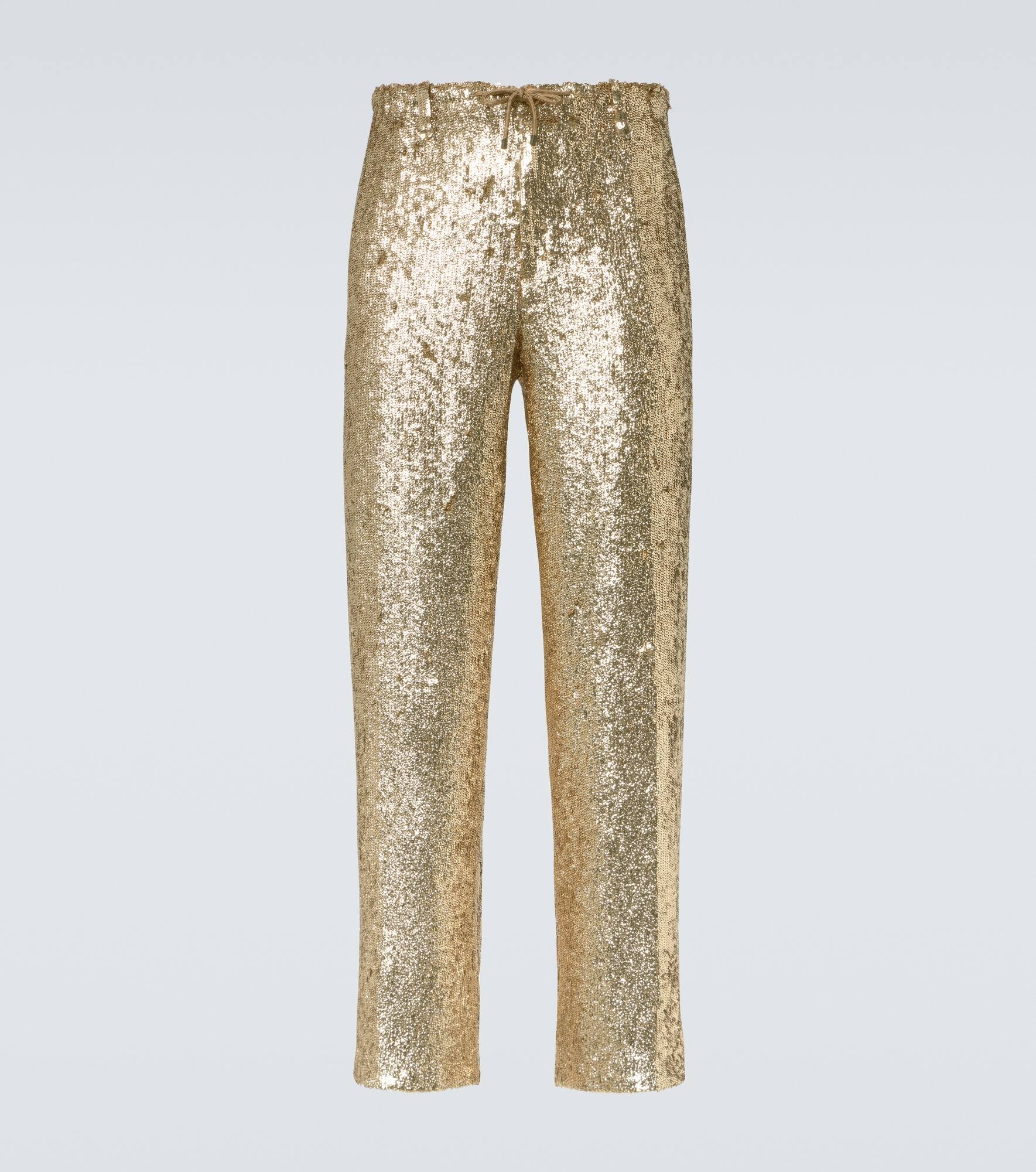 Welcome a pair of sequined pants into your edit, ready for the evenings when you want to be the center of attention. This pair from Dries Van Noten comes in a straight-leg silhouette. Product Details - Material: 100% viscose - Care instructions: dry clean - Made in India - Designer color name: Gold - Item color: gold - Item number: P01065435 Size & Fit - True to size - Adjustable at the waist - Non-stretchy fabric - Wide-leg - The model in the picture is 185cm-6'1" and wearing a size 50
