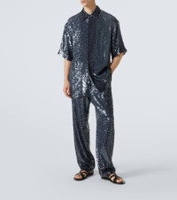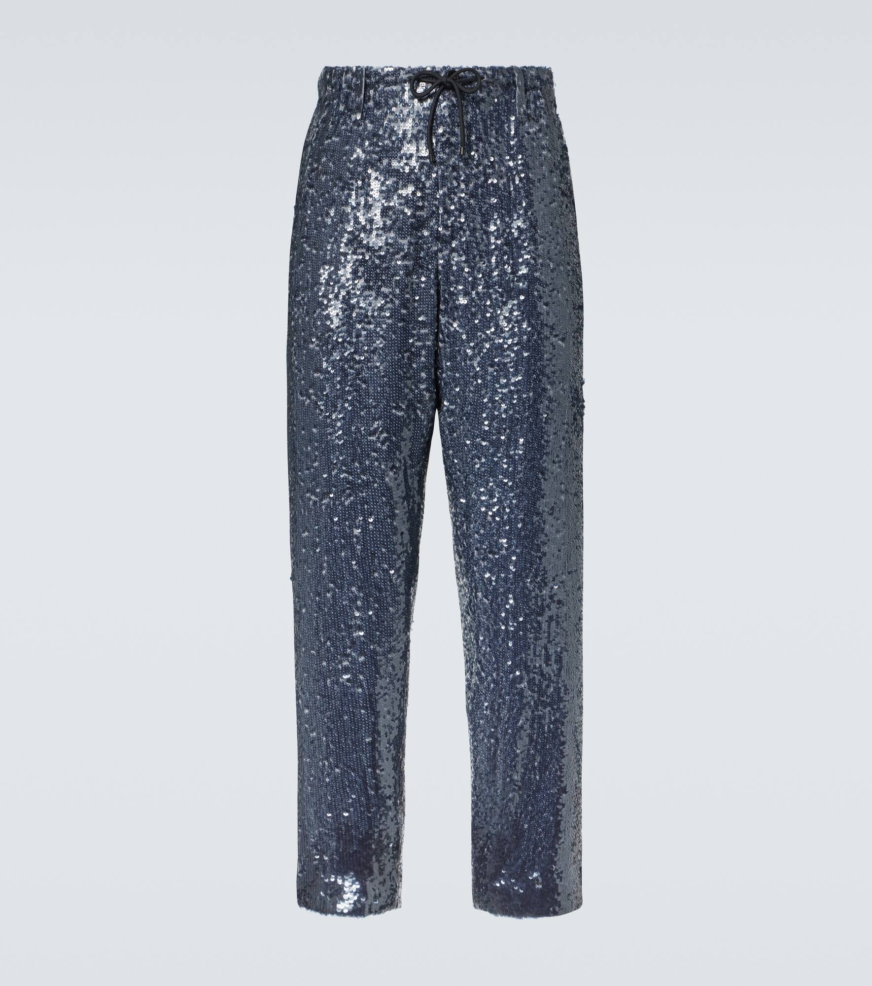 Welcome a pair of sequined pants into your edit, ready for the evenings when you want to be the center of attention. This pair from Dries Van Noten comes in a straight-leg silhouette. Product Details - Material: 100% viscose - Care instructions: dry clean - Made in India - Designer color name: Navy - Item color: blue - Pockets: side slit pockets - Item number: P01065434 Size & Fit - True to size - Adjustable at the waist - Non-stretchy fabric - Wide-leg - The model in the picture is 185cm-6'1" and wearing a size 50