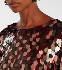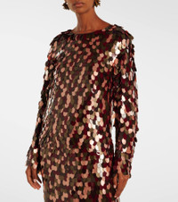 Perfect for starry evenings, this Dries Van Noten top features a minimalist silhouette, a relaxed fit, and a luminous sequin pattern in shades of burgundy and pink. Product Details - Material: 100% viscose - Care instructions: dry clean - Made in India - Designer color name: Burgundy - Item color: burgundy, multicolor - Lining: 100% viscose - Item number: P01092138 Size & Fit - True to size - Straight fit - Non-stretchy fabric - Falls to the hip - The model seen in the picture is 178cm-5'10" and wearing a size FR 36