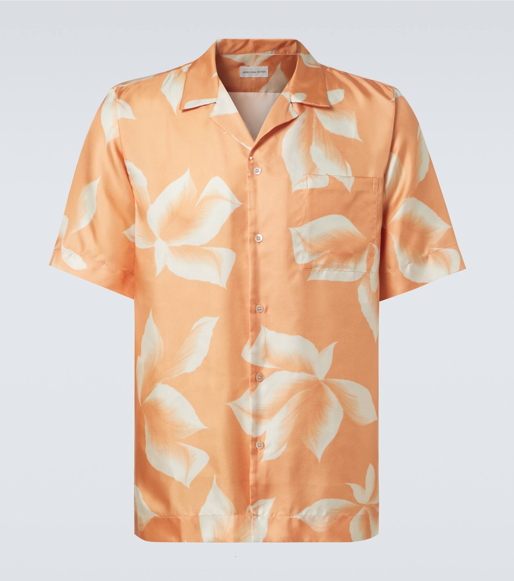 Camp-Collar Floral-Print Silk-Twill Shirt
