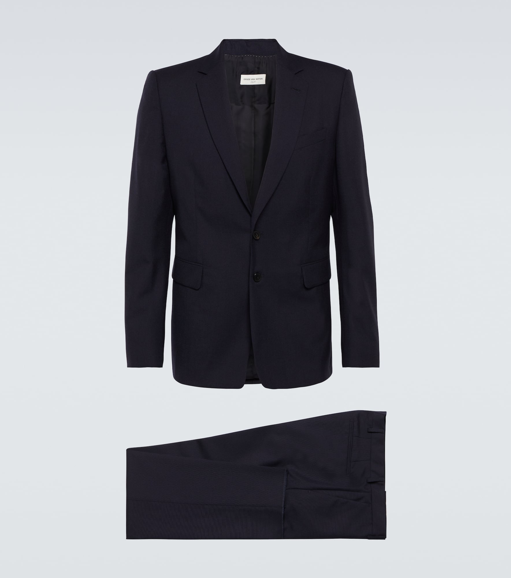 Product Details - Material: 100% wool - Care instructions: dry clean - Made in Morocco - Designer color name: Navy - Lining: 100% cupro - Sleeve lining: 100% viscose - Two-piece set - Closure: buttoned front, zipper fly, button and hook fastenings - Pockets: flap pockets, side slit pockets, back pockets - Item number: P00892260 Size & Fit - Fits small to size - we recommend trying one size larger - Slim fit - Non-stretchy fabric - Slim-leg - Unhemmed for tailoring - The model in the picture is 185cm-6'1" and wearing a size IT 50