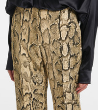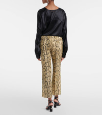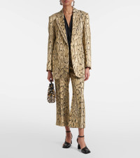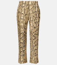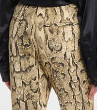 Dries Van Noten's prints are often abstract, overtly maximalist, and always one-of-a-kind. Recalling the effect of snakeskin, these flared pants are slightly cropped at the ankles and fitting for bold, creative styling. Product Details - Material: 64% viscose, 36% cotton - Care instructions: dry clean - Made in Hungary - Designer color name: Beige - Item color: beige - Closure: zip, hook, and button fastening - Pockets: side slit pockets, back pockets - Belt loops - Item number: P01030476 Size & Fit - Fits large to size - we recommend trying one size smaller - Straight leg - The model seen in the picture is 178cm-5'10" and wearing a size FR 34
