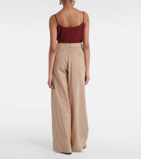 You can go to work, run errands, or relax in these pants from Dries Van Noten. Made from breathable cotton-blend, this wide-leg style comes in a thinly striped pattern that can be creatively styled to taste. Product Details - Material: 55% cotton, 45% cupro - Care instructions: dry clean - Made in Tunisia - Designer color name: Sand - Item color: brown, beige - Closure: drawstring - Pockets: side slit pockets, back pocket - Item number: P01030464 Size & Fit - Fits large to size - we recommend trying one size smaller - Elasticated waist - Adjustable at the waist - Wide-leg - The model seen in the picture is 178cm-5'10" and wearing a size XS