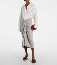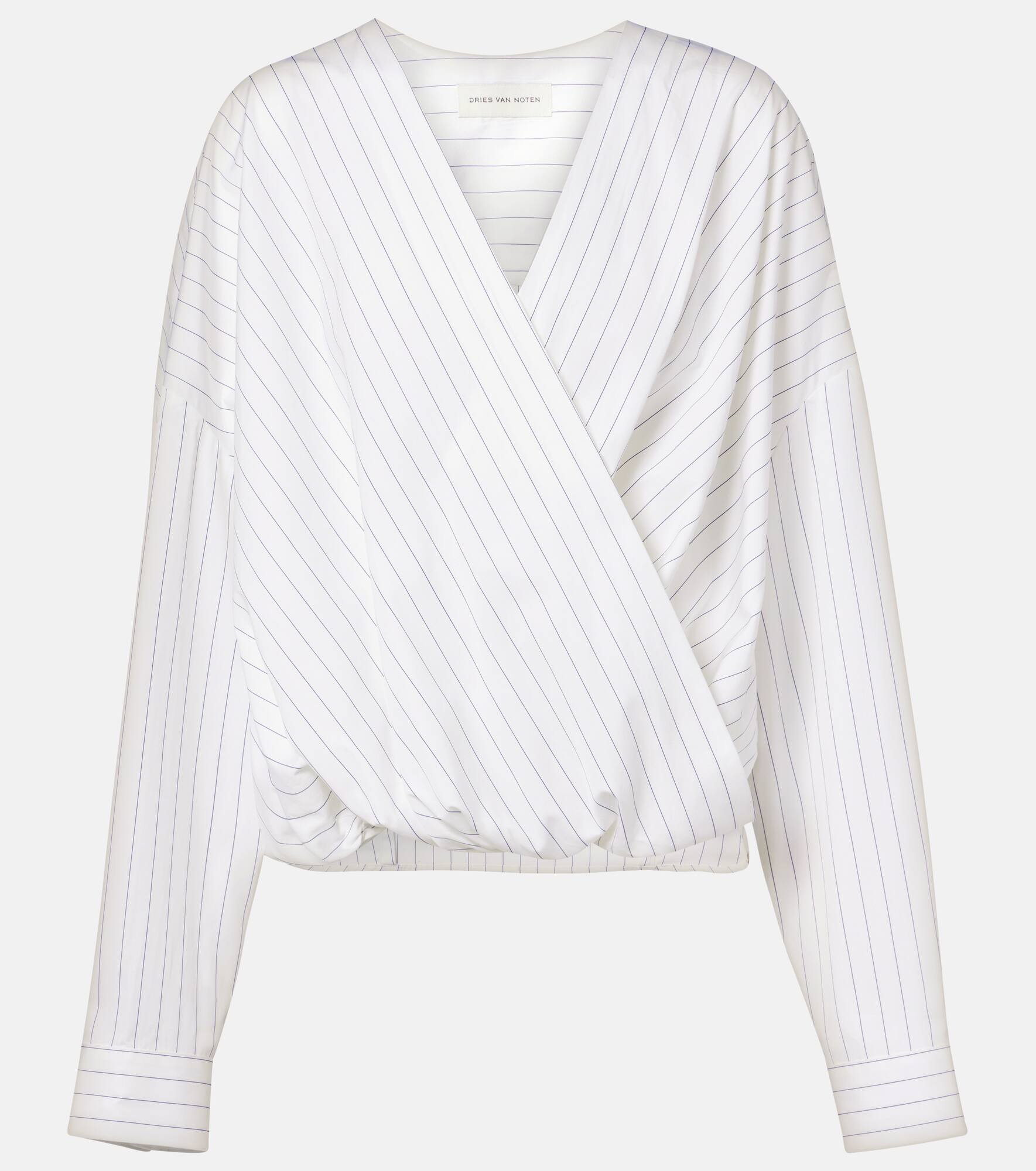 Oversized wrap-effect pinstriped cotton-poplin blouse White
