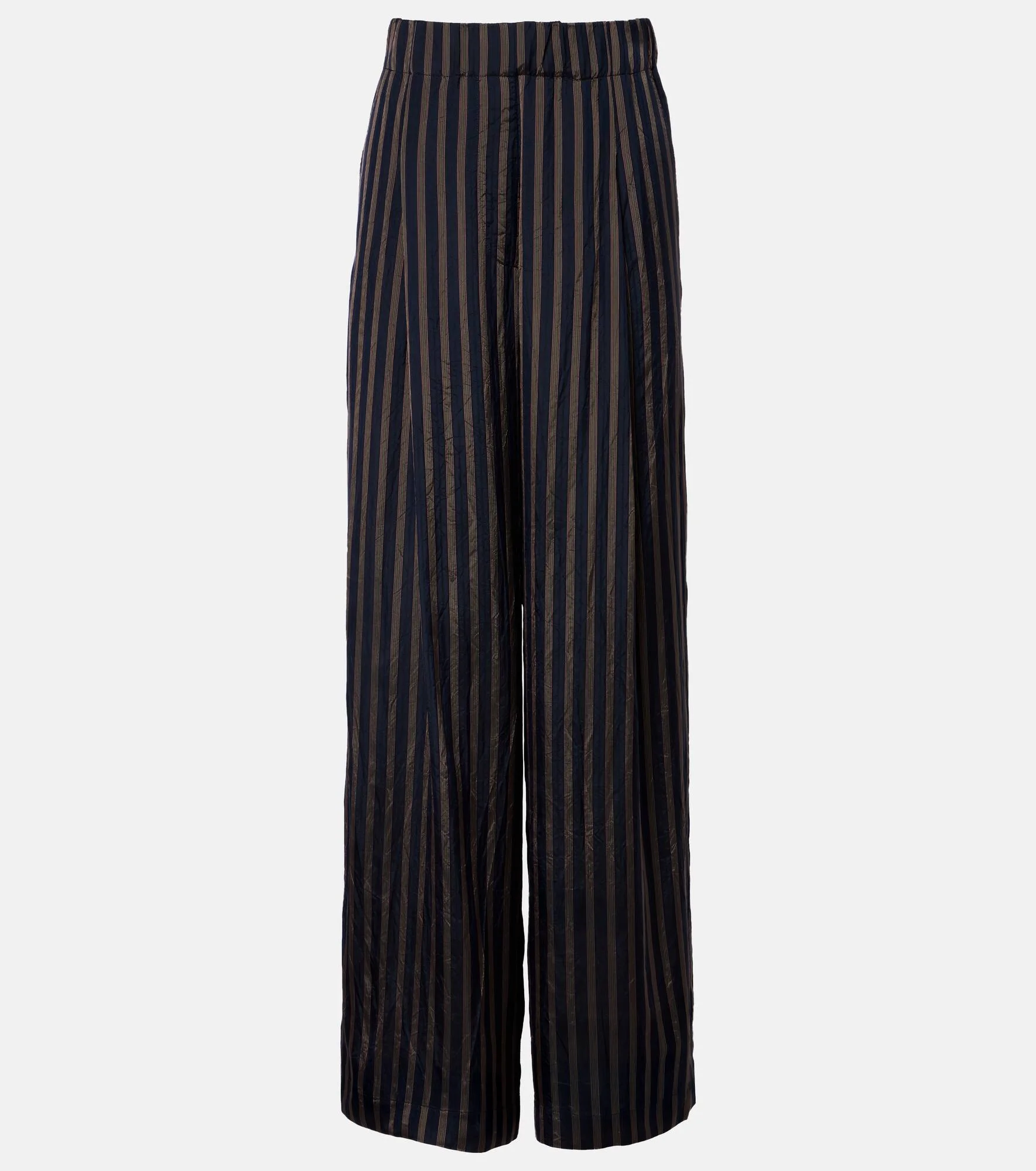 Critically acclaimed Belgian designer Dries Van Noten approaches womenswear with an inimitable, artful perspective. Cut to a timeless wide-leg silhouette, these eye-catching pants feature a striped motif printed all over. Product Details - Material: 100% cupro - Care instructions: dry clean - Made in Tunisia - Color: blue - Designer color name: Navy - Item color: blue - Elasticated drawstring waist - Pockets: side slit pockets, back pocket - Item number: P01126862 Size & Fit - Fits large to size - we recommend trying one size smaller - Elasticated waist - Adjustable at the waist - Non-stretchy fabric - Wide-leg - The model seen in the picture is 178cm-5'10" and wearing a size XS