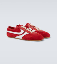 Inspired by 70s marathon style, these Dries Van Noten sneakers blend casual ease with sporty elegance. Crafted from smooth suede, the rounded-toe pair features classic lace-up closure and a signature thin sole. Product Details - Upper: calf leather (suede) - Lining: leather - Sole: leather insole, rubber sole - Toe shape: round toe - Made in Italy - Includes: shoe box, extra laces, dust bag - Designer color name: Red - Item color: red - Item number: P01086499 Size & Fit - True to size - Half sizes please take the next size down - European sizes
