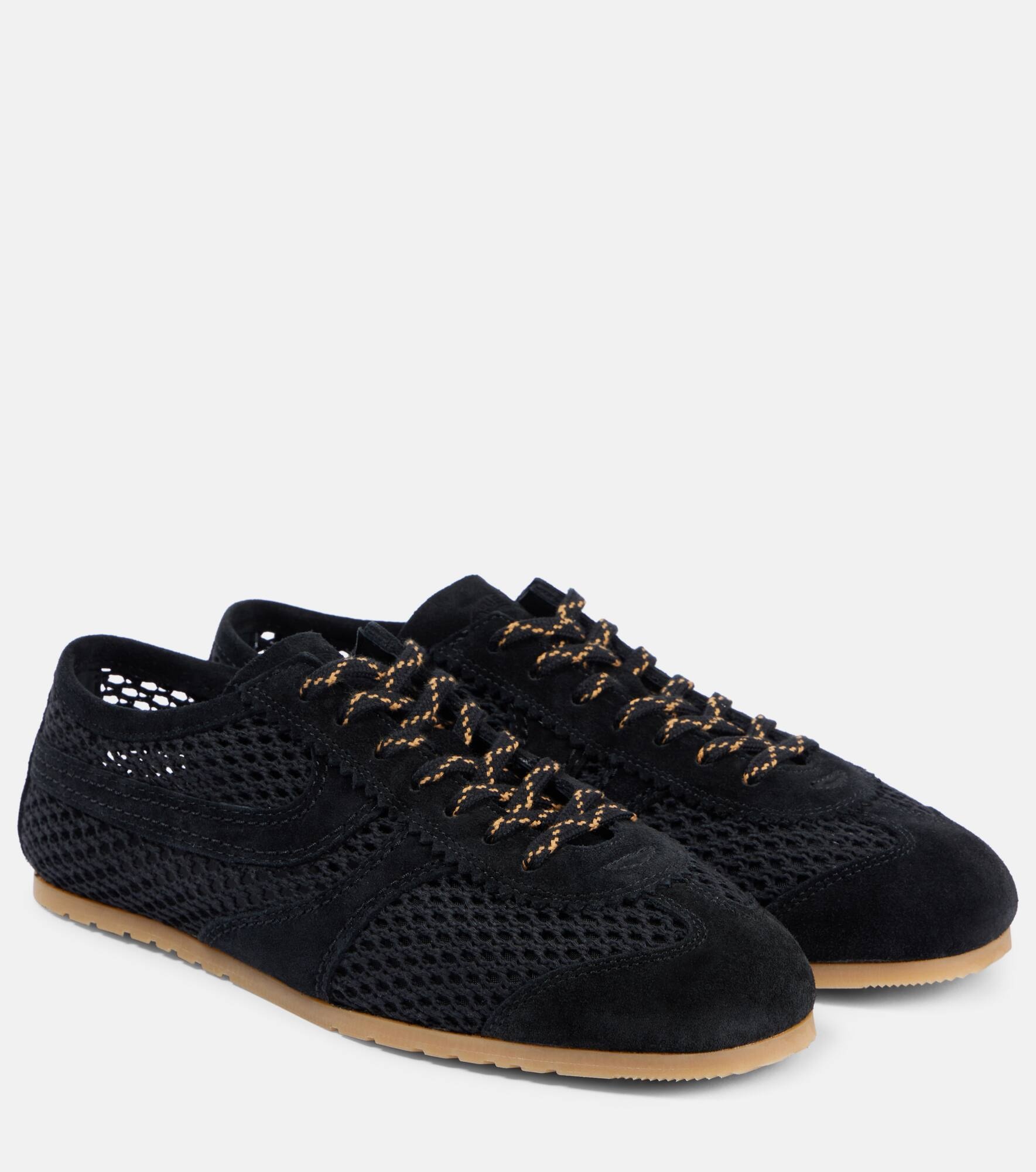 Suede-trimmed mesh sneakers