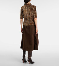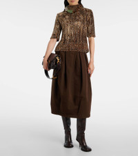 Dries Van Noten creates styles that are always unique. This velvet sweater is designed with a short-sleeved silhouette and features a mock neck, a ribbed hemline, and a colorful, intricate pattern. Product Details - Material: 100% viscose - Care instructions: hand wash - Made in Belgium - Designer color name: Grey - Item color: multicolor - Collar: mockneck - Item number: P01093162 Size & Fit - True to size - Straight fit - Slightly stretchy fabric - Slightly cropped - The model seen in the picture is 178cm-5'10" and wearing a size XS
