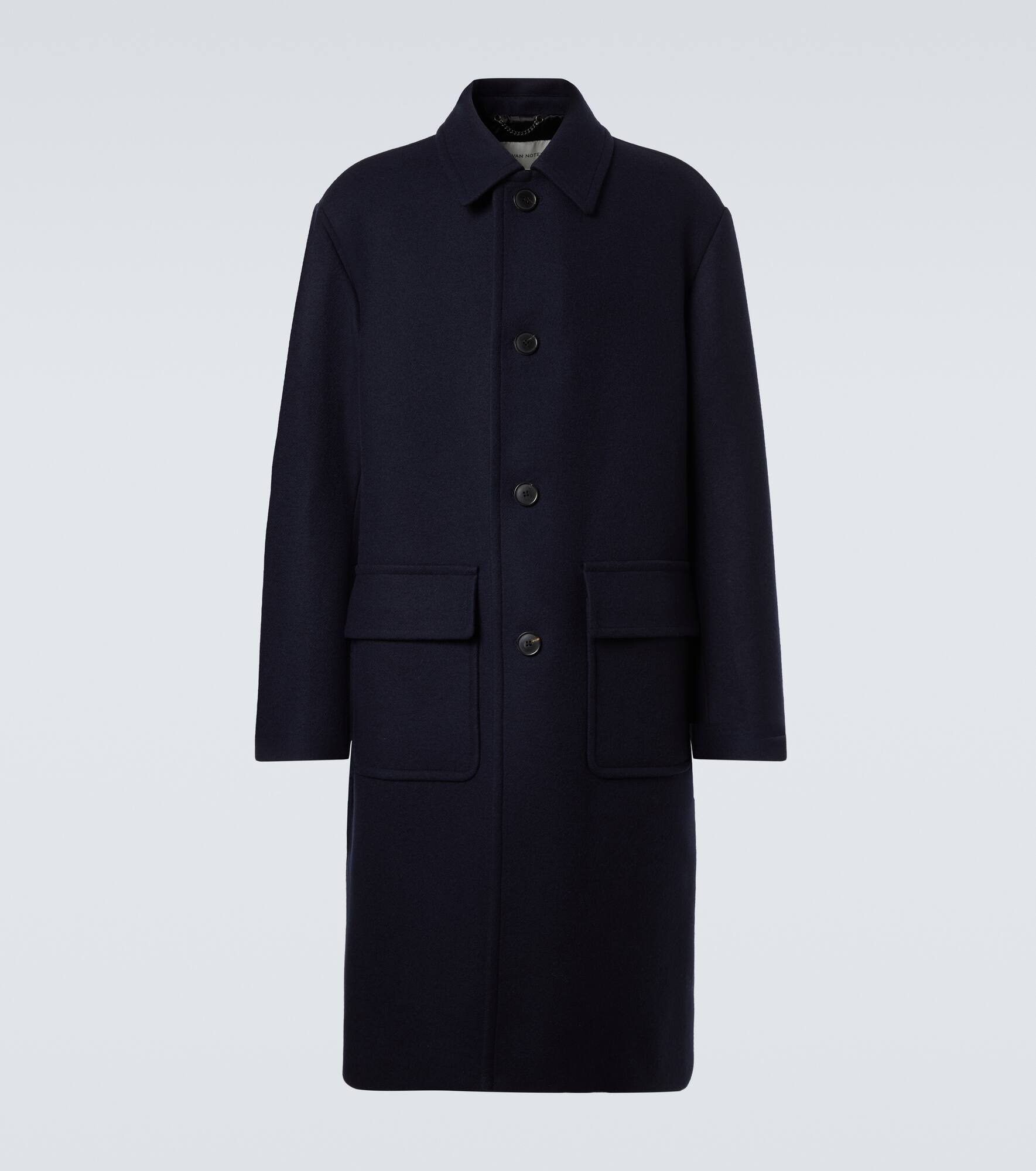 Juxtaposing a poetic sensibility with intelligent tailoring, Dries Van Noten creates styles that are always unique. This overcoat is cut from wool-blend twill and defined by a relaxed silhouette and double patch pockets on the front. Product Details - Material: 70% wool, 30% polyamide - Care instructions: dry clean - Made in Romania - Designer color name: Navy - Item color: blue - Lining: 60% cupro, 40% cotton - Closure: buttoned front - Pockets: flap pockets, internal pockets - Vent: single - Item number: P01086513 Size & Fit - Fits large to size - we recommend trying one size smaller - Dropped shoulders - Designed for a loose fit - Non-stretchy fabric - Height of model is 188cm-74" and wears a size L