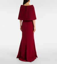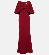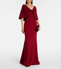 This stunning Elie Saab gown is designed with a caped neckline that knots at the chest. Made from precious cady, the style creates endless demure appeal. Product Details - Material: 38% silk, 33% viscose, 27% acetate, 2% elastane - Care instructions: dry clean - Made in Lebanon - Designer color name: Luscious Red - Item color: red - Lining: 100% silk - Closure: concealed zipper, zipped back, hook-fastening back - Boning - Item number: P01061107 Size & Fit - True to size - Fitted - Loose outer layer - Slightly stretchy fabric - The model seen in the picture is 178cm-5'10" and wearing a size FR 36
