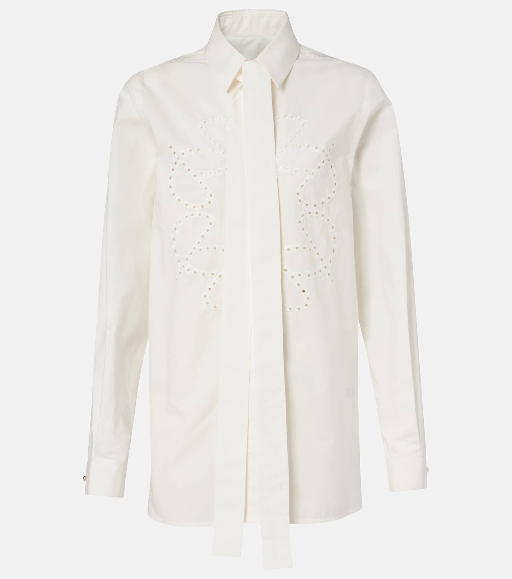 Elie Saab’s impactful designs are proof that the right outfit can make a special occasion all the more memorable. Crafted from cotton, this shirt features a classic collar with statement gold-tone buttons and a concealed placket. Product Details - Material: 99% cotton, 1% polyester - Care instructions: dry clean - Made in Lebanon - Designer color name: Powder White - Item color: white - Hardware color: gold - Collar: classic (Straight point) - Closure: concealed button placket - Detachable band - Cuff: one button - Item number: P01061124 Size & Fit - True to size - Designed for a loose fit - Non-stretchy fabric - Falls below the hip - The model seen in the picture is 178cm-5'10" and wearing a size FR 36