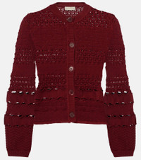 Elie Saab’s impactful designs are proof that the right outfit can make a special occasion all the more memorable. This cardigan features intricately crocheted details that let your skin peek through. Product Details - Material: 70% viscose, 30% polyamide - Care instructions: dry clean - Made in Italy - Designer color name: Fireball Lily - Item color: red - Closure: buttoned front - Item number: P01026799 Size & Fit - True to size - Straight fit - Slightly stretchy fabric - Slightly cropped - The model seen in the picture is 178cm-5'10" and wearing a size XS
