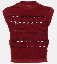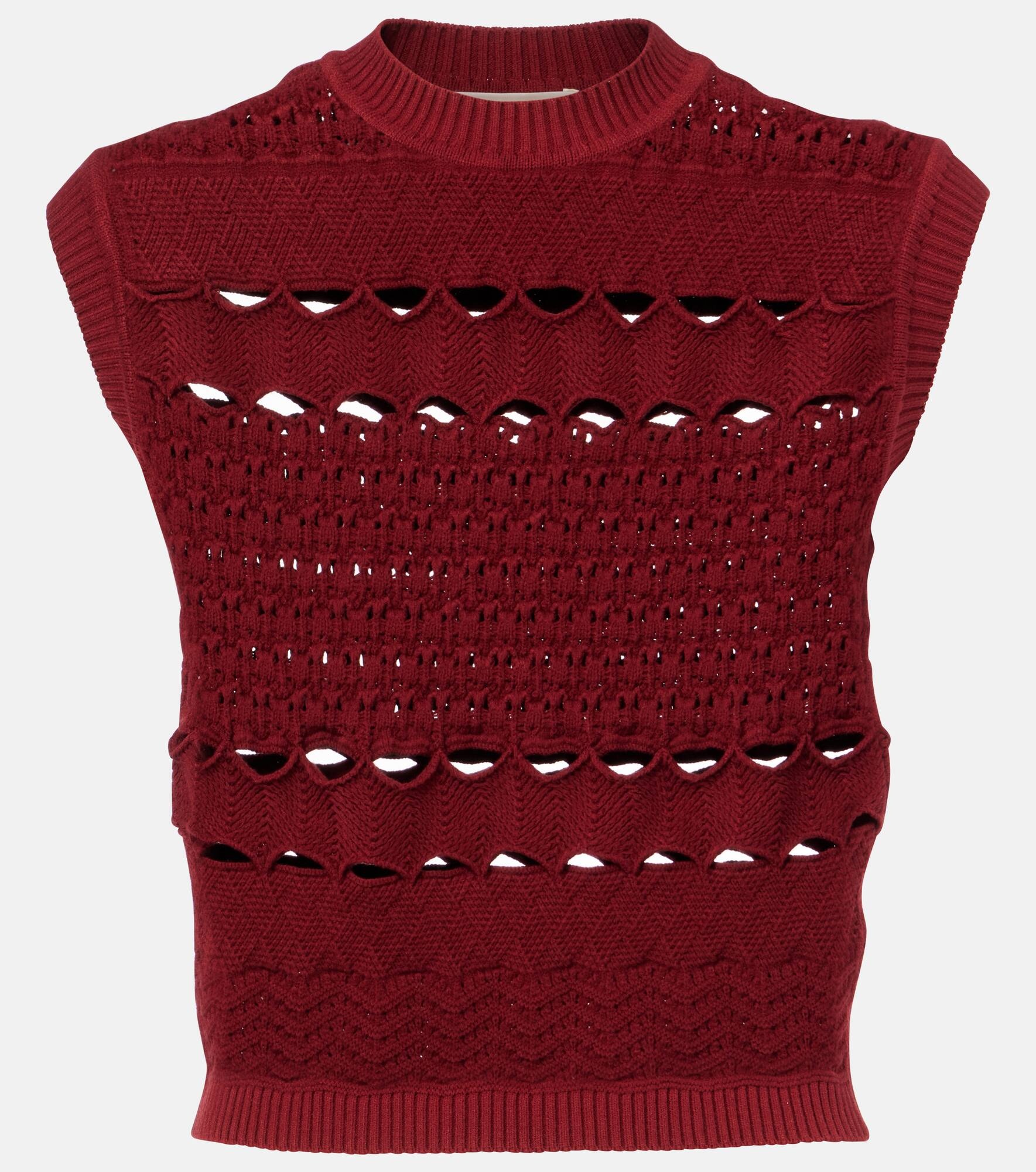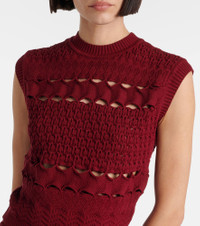 Elie Saab’s impactful designs are proof that the right outfit can make a special occasion all the more memorable. This knit top has s round neckline and sheer cut-out and is best paired with the matching skirt. Product Details - Material: 70% viscose, 30% polyamide - Care instructions: hand wash - Made in Italy - Designer color name: Fireball Lily - Item color: burgundy - Item number: P01026801 Size & Fit - True to size - Semi-sheer - Straight fit - Slightly stretchy fabric - Cropped - The model seen in the picture is 178cm-5'10" and wearing a size XS