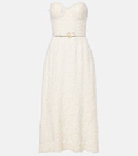Product Details - Material: 33% cotton, 30% viscose, 27% acetate, 4% nylon - Care instructions: dry clean - Made in Lebanon - Designer color name: Powder White - Closure: zip and hook fastening - Lining: 100% silk - Item number: P00968153 Size & Fit - True to size - Strapless - Internal corset with underwire support - Cinched waist - Non-stretchy fabric - The model seen in the picture is 178cm-5'10" and wearing a size FR 36