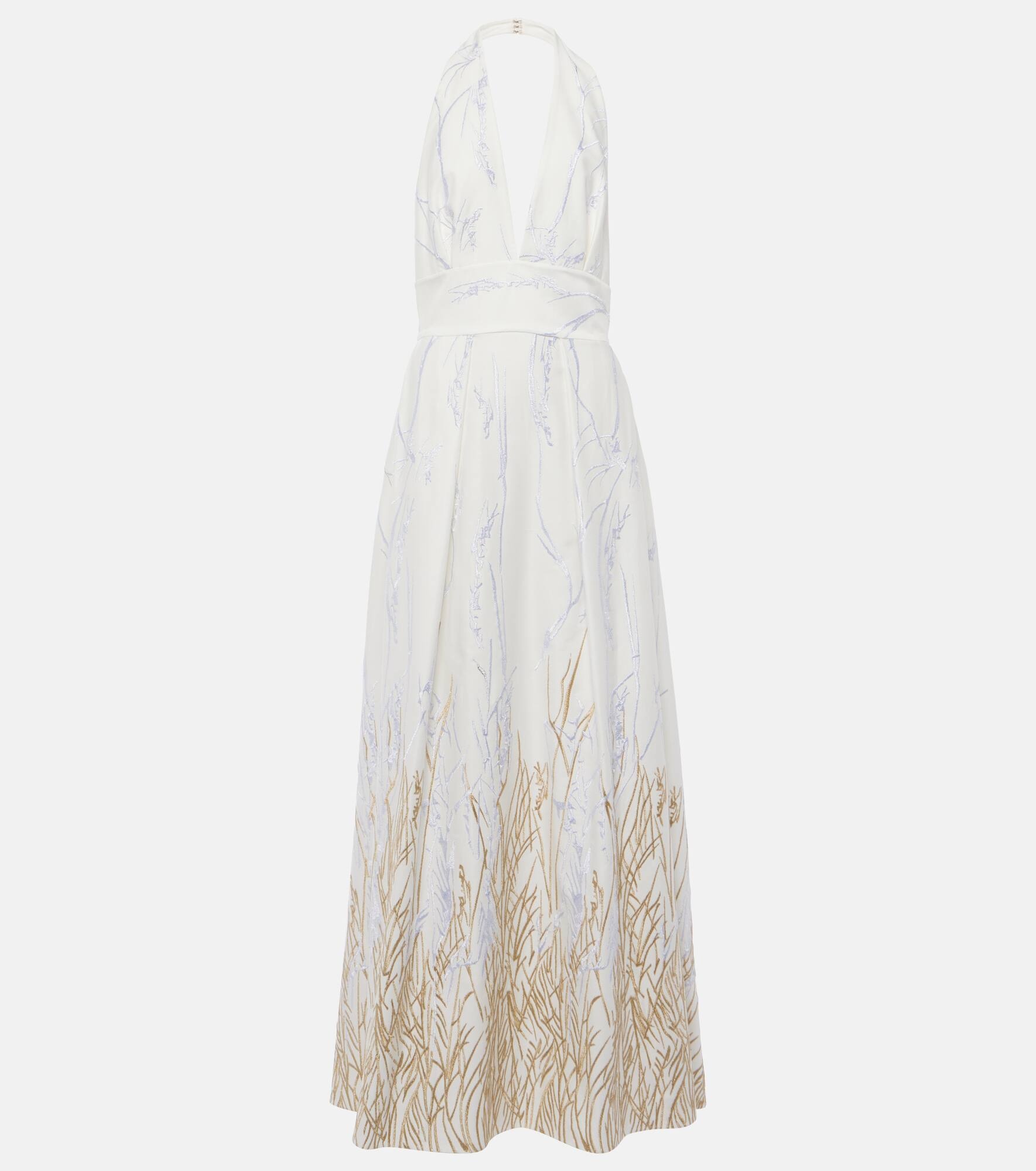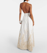 Product Details - Material: 47% cotton, 40% acetate, 13% polyester - Care instructions: dry clean - Made in Lebanon - Designer color name: White/Gold/Silver - Closure: concealed zipper, hook fastening - Pockets: side slit pockets - Item number: P00959215 Size & Fit - True to size - Low back - Cinched waist - Non-stretchy fabric - The model seen in the picture is 178cm-5'10" and wearing a size FR 36