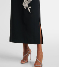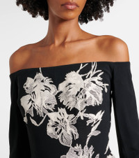 Tulle Embroidered Off-The-Shoulder Midi Dress black