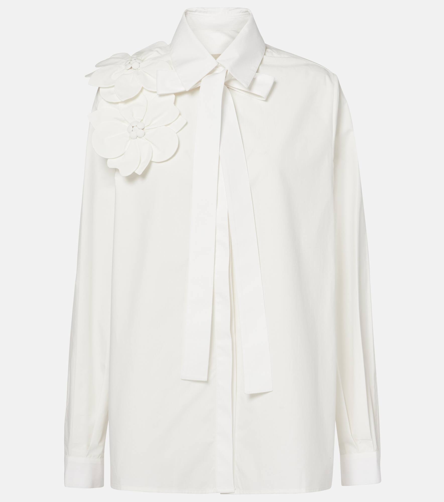 Floral-Appliquéd Cotton Poplin Shirt off-white