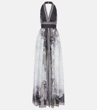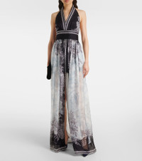 Product Details - Material: 100% silk - Care instructions: dry clean - Made in Lebanon - Designer color name: Black/White/Blue - Closure: concealed zipper - Lining: 100% silk - Item number: P01007985 Size & Fit - True to size - Low back - Cinched waist - Non-stretchy fabric - High-cut leg - The model seen in the picture is 178cm-5'10" and wearing a size FR 36