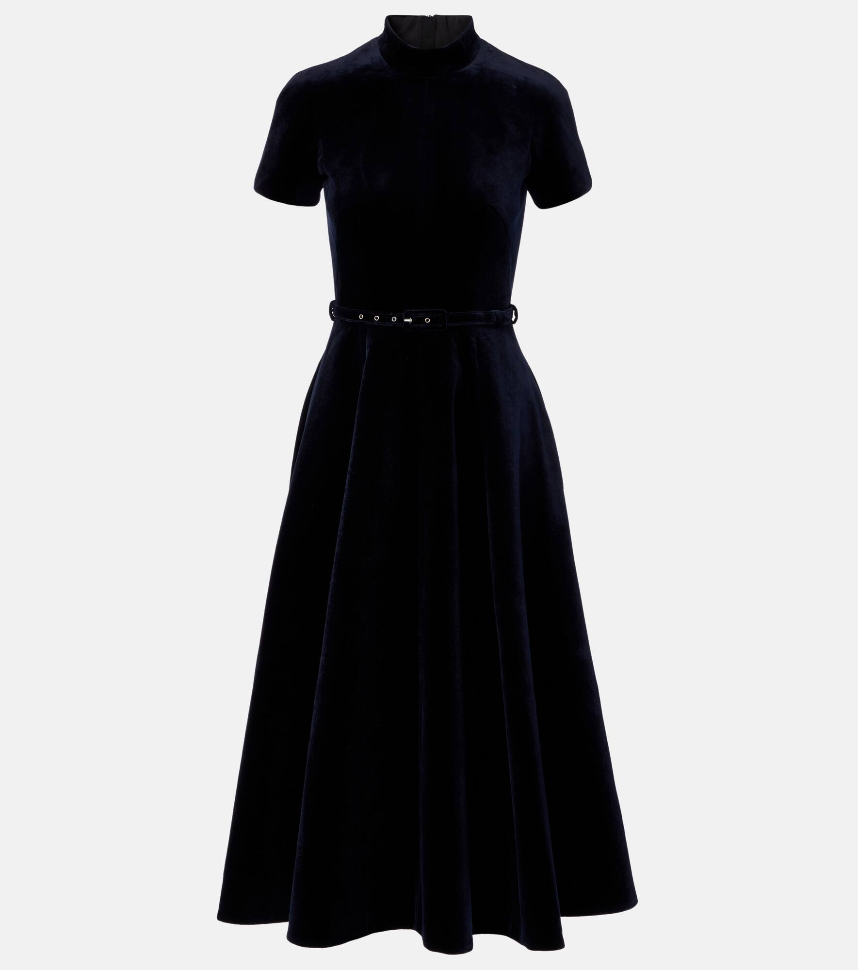 At once polished and pared-back, Emilia Wickstead proves that simple, well-executed silhouettes will stand out. A signature style, this iteration of the Camilla midi dress is cut from plush velvet and comes with a tonal belt. Product Details - Material: 100% cotton - Care instructions: dry clean - Made in the UK - Designer color name: Navy - Item color: blue - Lining: 100% polyester - Detachable belt - Closure: concealed zipped back - Item number: P01080429 Size & Fit - True to size - Cinched waist - Adjustable at the waist - Non-stretchy fabric - The model seen in the picture is 178cm-5'10" and wearing a size UK 8