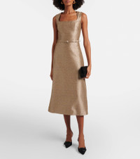 Known for clever use of colors paired with a whimsical aesthetic, Emilia Wickstead fuses tradition with contemporary touches. The Ciro cocktail dress is made tweed to a sequined midi-length design. Product Details - Material: 60% polyester, 24% viscose, 11% acrylic, 5% wool - Care instructions: dry clean - Made in the UK - Color: gold - Designer color name: Gold - Item color: gold - Closure: concealed zipped back - Detachable belt - Item number: P01129033 Size & Fit - Fits large to size - we recommend trying one size smaller - Cinched waist - Adjustable at the waist - Non-stretchy fabric - The model seen in the picture is 178cm-5'10" and wearing a size UK 6
