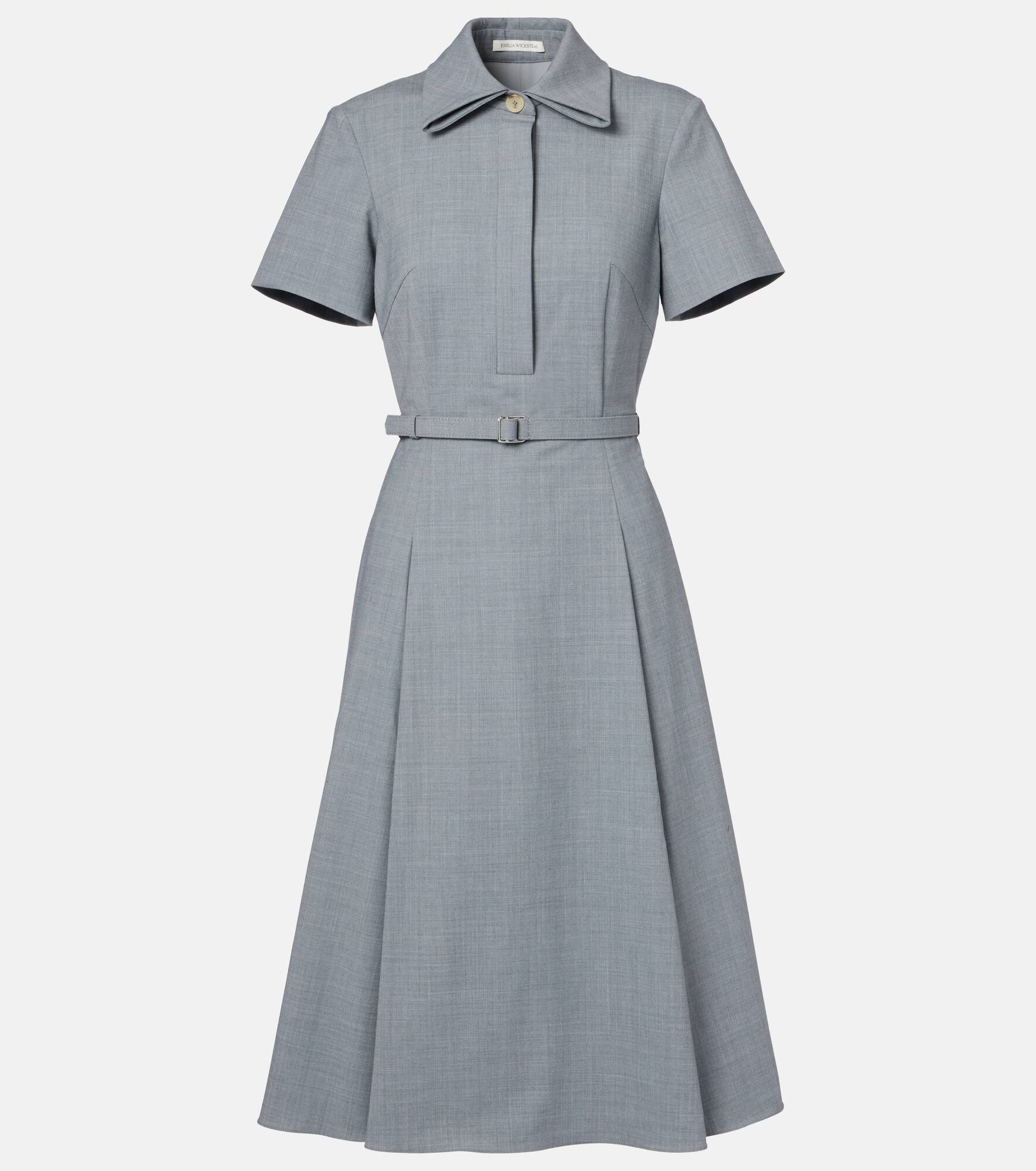 The Iwona midi dress from Emilia Wickstead is made from a lightweight fabric to a polished shirt-inspired silhouette. The short-sleeved style has a concealed buttoned placket on the front and comes with a matching belt. Product Details - Material: 53% polyester, 43% wool, 4% elastane - Care instructions: dry clean - Made in the UK - Designer color name: Grey - Item color: gray - Item number: P01026178 Size & Fit - True to size - Cinched waist - Stretchy fabric - The model seen in the picture is 178cm-5'10" and wearing a size UK 8