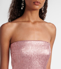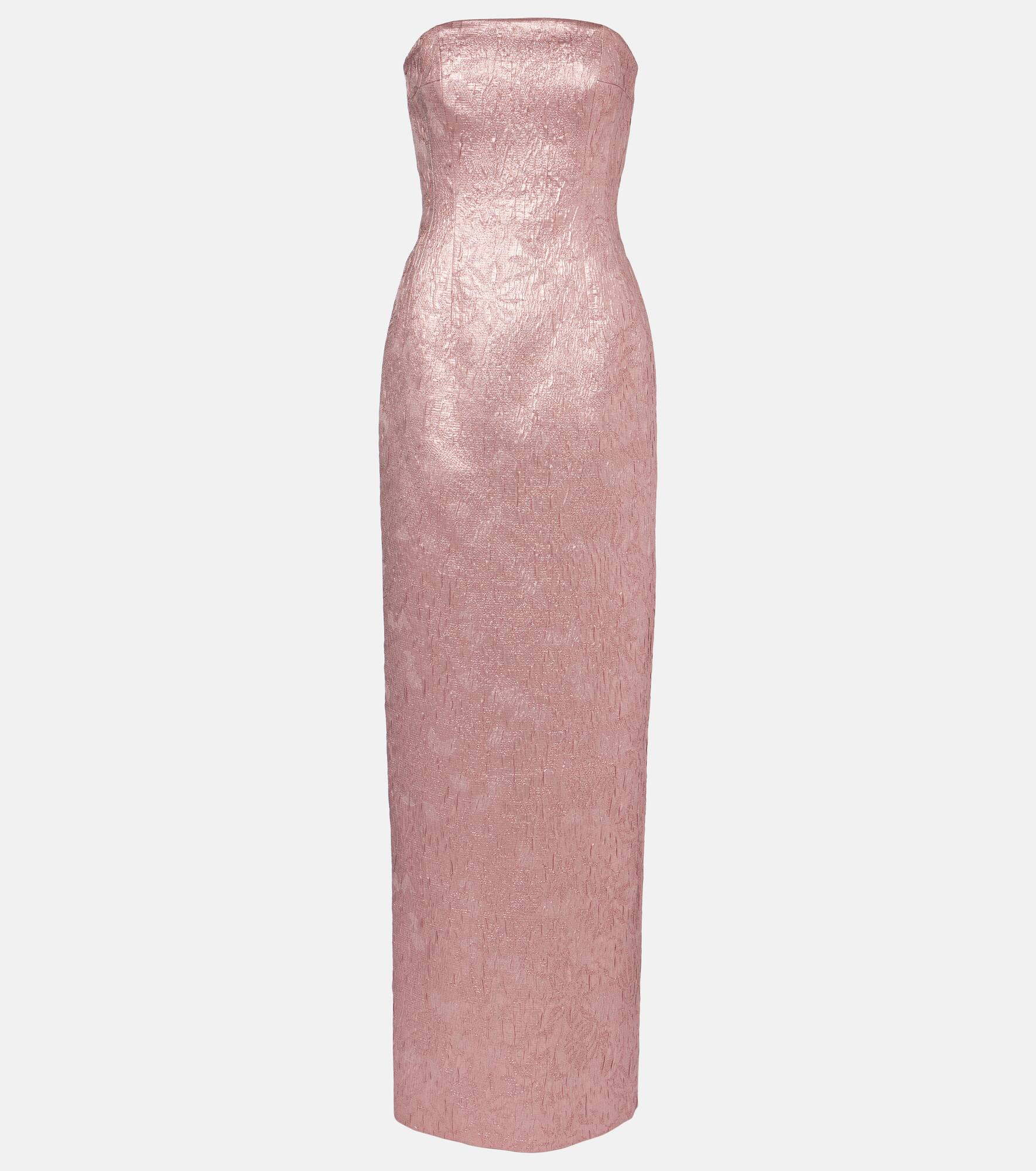 At once polished and pared-back, Emilia Wickstead proves that simple, well-executed silhouettes will stand out. Designed from a holographic cloque, the Laelia gown features a fitted bustier bodice and a zip closure at the back. Product Details - Material: 57% polyester, 35% metallic fibres, 8% polyamide - Care instructions: dry clean - Made in the UK - Designer color name: Pink - Item color: pink - Lining: 100% polyester - Built-in bustier - Boning - Closure: zipped back - Fully lined - Long vent - Item number: P01051514 Size & Fit - True to size - Strapless - Internal boned corset for support - Cinched waist - Non-stretchy fabric - slit length 66cm-26" - The model seen in the picture is 178cm-5'10" and wearing a size UK 8