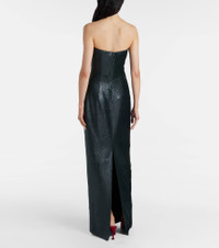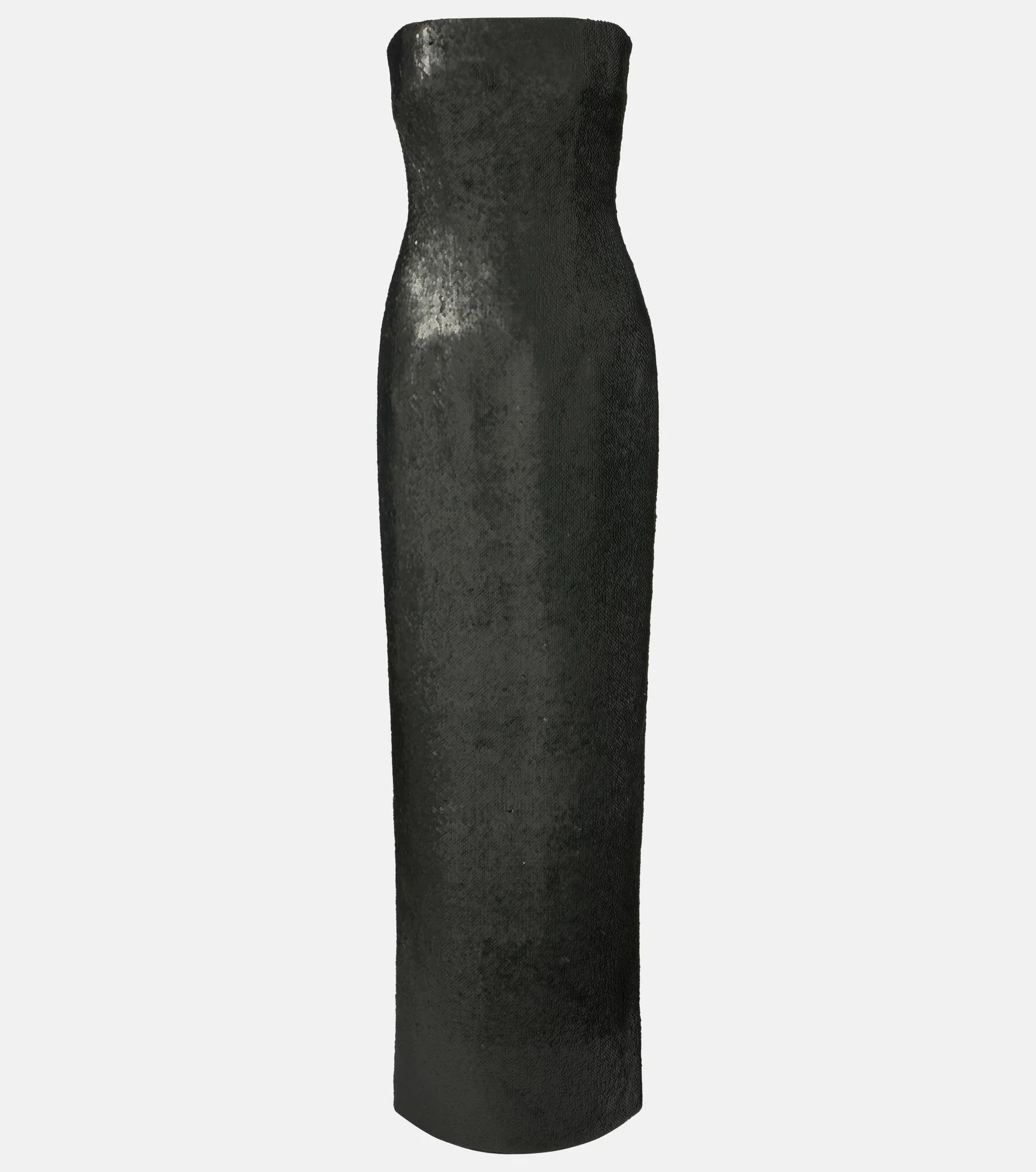 At once polished and pared-back, Emilia Wickstead proves that simple, well-executed silhouettes will stand out. Embellished with allover sequins, the Laelia gown features a fitted bustier bodice and a zip closure at the back. Product Details - Material: 100% polyester - Care instructions: hand wash cold - Made in the UK - Designer color name: Dark Green - Item color: green - Lining: 100% polyester - Boning - Built-in bustier - Closure: concealed zipped back - Short vent - Item number: P01080470 Size & Fit - True to size - Strapless - Internal boned corset for support - Fitted - Non-stretchy fabric - The model seen in the picture is 178cm-5'10" and wearing a size UK 8