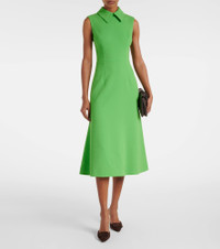 Emilia Wickstead's Leontine wool crepe midi dress is both understated and modern. Made in the UK, this elegant design features a subtly cinched waist and a retro-style pointed collar. Product Details - Material: 100% wool - Care instructions: dry clean - Made in Italy - Designer color name: Fresh Green - Item color: green - Fully lined - Lining: 100% polyester - Hem: straight - Sleeves: short-sleeved - Collar: classic (Straight point) - Contains non-textile parts of animal origin - Item number: P01051576 Size & Fit - True to size - Cinched waist - Non-stretchy fabric - The model seen in the picture is 178cm-5'10" and wearing a size UK 8