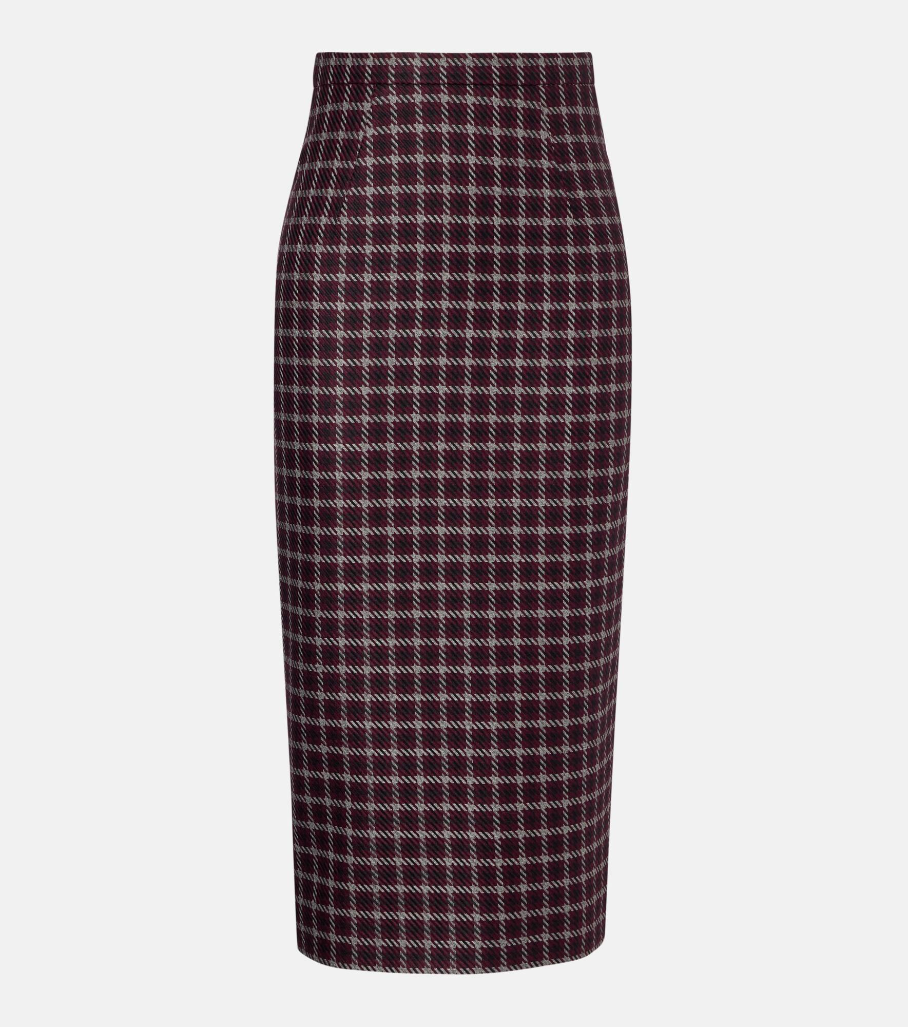 At once polished and pared-back, Emilia Wickstead proves that simple, well-executed silhouettes will stand out. The Lorelei pencil skirt is cut to a high-rise midi silhouette featuring a houndstooth pattern in a genzianella jacquard weave. Product Details - Material: 50% wool, 50% acrylic - Care instructions: dry clean - Made in the UK - Designer color name: Red/Black Houndstooth - Item color: burgundy, black - Lining: 100% polyester - Closure: concealed zipped back - Short vent - Item number: P01080453 Size & Fit - True to size - Non-stretchy fabric - High-waisted - The model seen in the picture is 178cm-5'10" and wearing a size UK 8