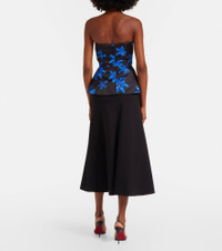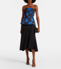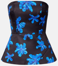 Woven into each collection, Emilia Wickstead’s decadent blooms are a hallmark of the brand. Case in point, the Regan genzianella tube top features a peplum silhouette and is entirely covered in a beautiful floral print. Product Details - Material: 100% polyester - Care instructions: dry clean - Made in the UK - Designer color name: Electric Blue Floral On Black - Item color: black, blue - Lining: 100% polyester - Closure: zipped back - Built-in bustier - Boning - Fully lined - Item number: P01070491 Size & Fit - True to size - Strapless - Cinched waist - Non-stretchy fabric - Falls to the hip - The model seen in the picture is 178cm-5'10" and wearing a size UK 8