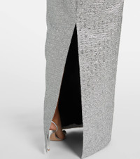Product Details - Material: 46% metallic fibres, 33% silk, 21% polyamide - Care instructions: hand wash - Made in the UK - Designer color name: Silver - Closure: zipped back - Adjustable inner tabs at the waist - Lining: 100% polyester - Item number: P01002557 Size & Fit - True to size - Fitted - Non-stretchy fabric - The model seen in the picture is 178cm-5'10" and wearing a size UK 8