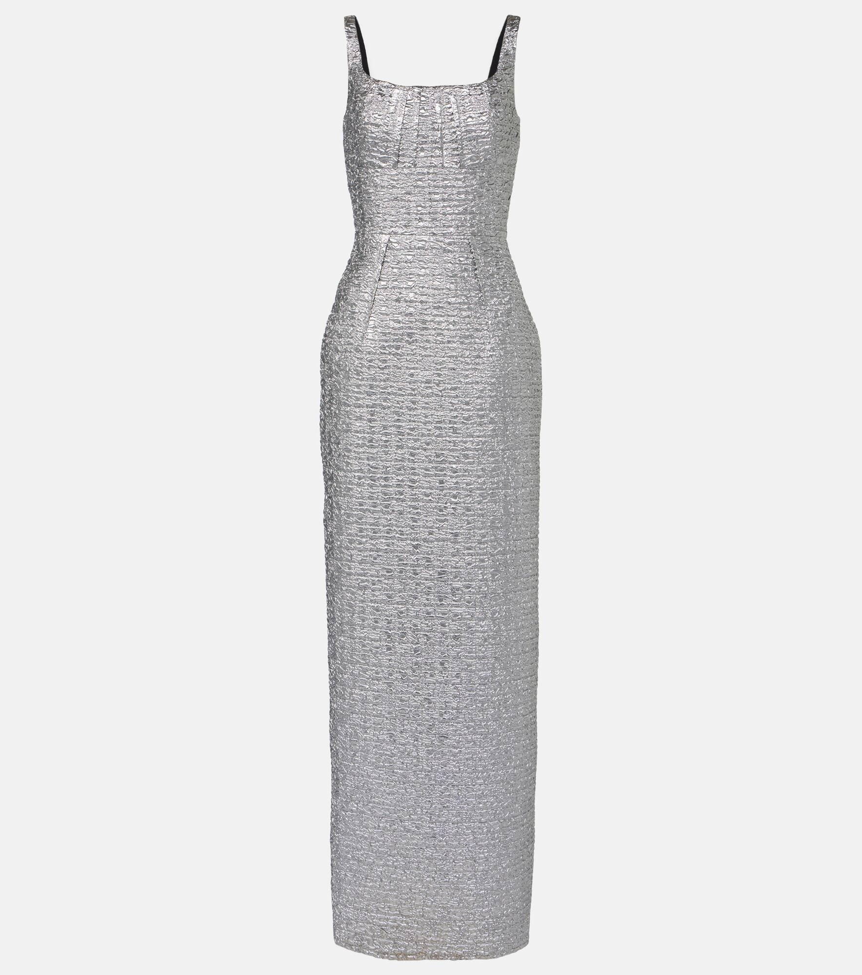 Sharon pintucked metallic seersucker maxi dress Silver