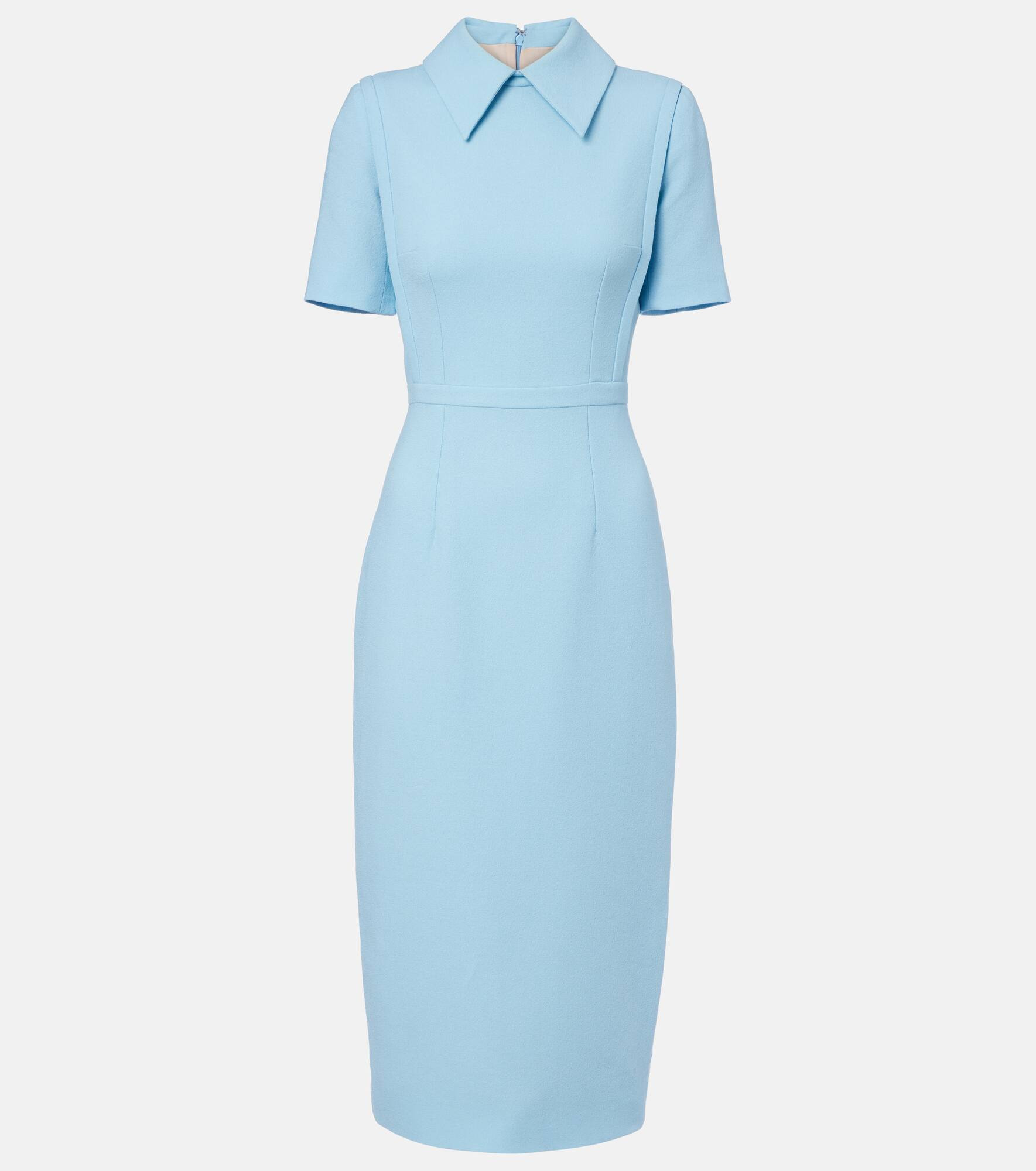 At once polished and pared-back, Emilia Wickstead proves that simple, well-executed silhouettes will stand out. Made from wool, the Valletta cocktail dress is complete with a pointed collar and a back slit. Product Details - Material: 100% wool - Care instructions: dry clean - Made in the UK - Designer color name: Sky Blue - Item color: blue - Lining: 100% polyester - Item number: P01051571 Size & Fit - True to size - Cinched waist - Slightly stretchy fabric - slit length 34cm-13.5"