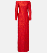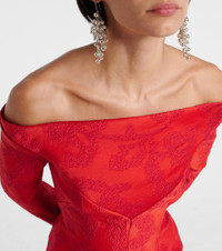 Zarit off-the-shoulder bouclé-jacquard maxi dress Red