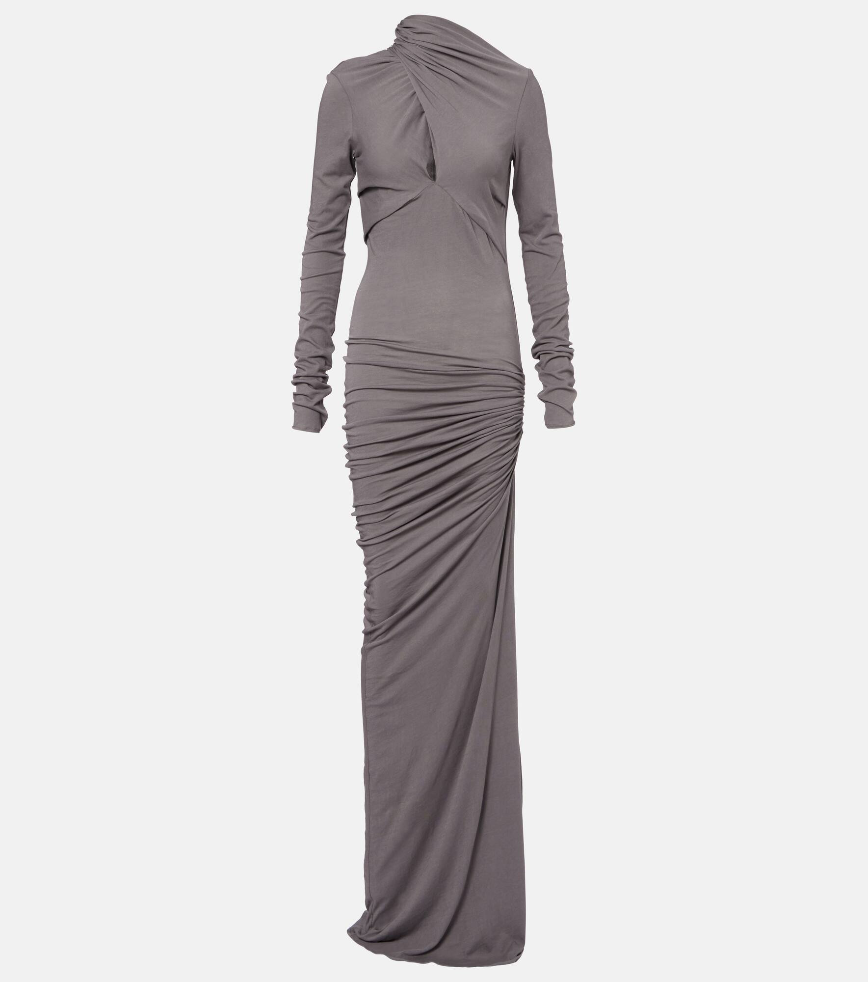 Made for the spotlight, this ruched gown from Entire Studios features elegant draping and a fluid, floor-length silhouette that flatters the body. Crafted from a soft cotton blend, the design is finished with a turtleneck. Product Details - Material: 94% cotton, 6% elastane - Care instructions: machine wash at 30 degrees - Made in China - Designer color name: Deep Grey - Item color: gray - Collar: turtleneck - Item number: P01071093 Size & Fit - True to size - Semi-sheer - Fitted - Stretchy fabric - The model seen in the picture is 178cm-5'10" and wearing a size XS