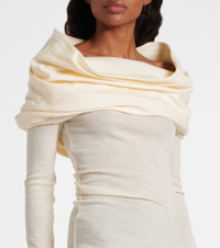 Designed to outlast the archives, Entire Studios constructs each piece with meticulous attention to detail and longevity in mind. Crafted from soft wool, this elegant gown is draped into a form-fitting silhouette with a cape-like detail. Product Details - Material: 100% wool - Care instructions: dry clean - Made in China - Designer color name: Pharchment - Item color: beige - Trim: 100% cotton - Long vent - Item number: P01071030 Size & Fit - True to size - Sizing adapted to taller women - Extra-long sleeves - Semi-sheer - Fitted - Partly stretchy fabric - The model seen in the picture is 178cm-5'10" and wearing a size XS