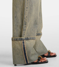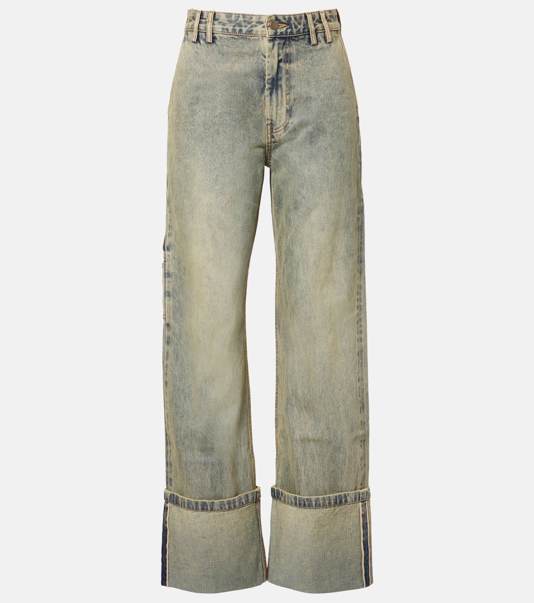 Designed to outlast the archives, Entire Studios constructs each piece with meticulous attention to detail and longevity in mind. These jeans are cut to a flattering wide-leg silhouette with a cuffed hem, complemented by a charming faded effect. Product Details - Material: 100% cotton - Care instructions: machine wash at 30 degrees - Made in China - Designer color name: Surface Wave - Item color: blue - Hardware color: antique silver - Closure: zip and button fastening - Pockets: slant pockets, back pockets - Double belt loops - Hem: cuffed - Item number: P01071041 Size & Fit - True to size - Non-stretchy fabric - Straight leg - Mid-rise - The model seen in the picture is 178cm-5'10" and wearing a size XS