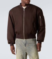 Designed to outlast the archives, Entire Studios constructs each piece with meticulous attention to detail and longevity in mind. This wool bomber jacket is cut to a slightly oversized silhouette with an elasticated and ribbed hem. Product Details - Material: 100% wool - Care instructions: dry clean - Made in China - Designer color name: Dark Brown - Item color: brown - Lining: 100% polyester - Filling: 100% polyester - Closure: zipped front - Shoulder pads - Pockets: flap pockets, sleeve pockets, internal pocket - Cuff: ribbed, elasticated - Hem: ribbed, elasticated - Item number: P01085133 Size & Fit - True to size - Dropped shoulders - Elasticated hem - Oversized - Slightly cropped - Height of model is 189cm-74.5" and wears a size L