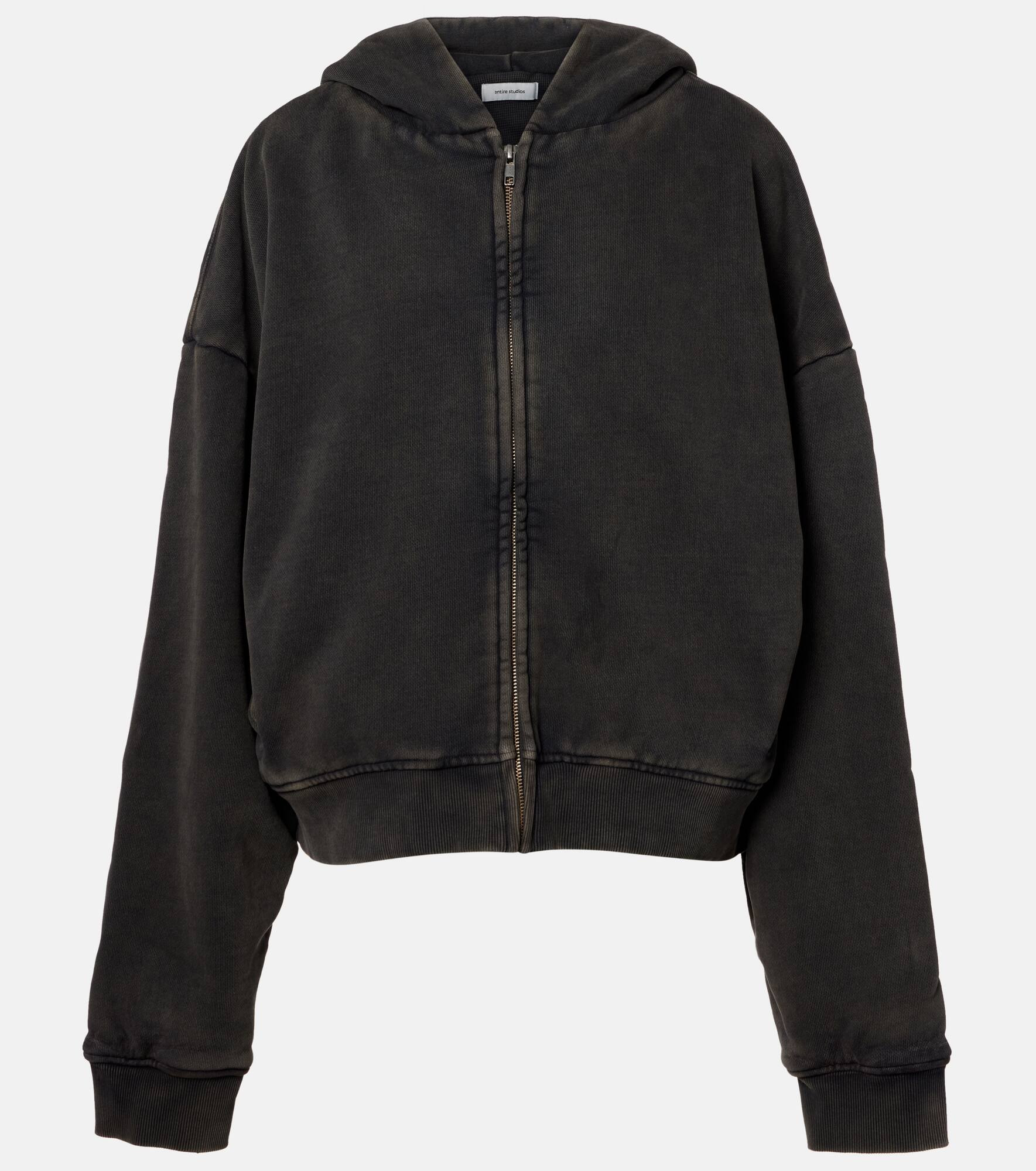 The Thermal zip-up hoodie from Entire Studios is crafted from soft cotton fleece, combining comfort with a modern, laid-back edge. The design is finished with welt pockets and ribbed trims. Product Details - Material: 100% cotton - Care instructions: machine wash at 30 degrees - Made in China - Designer color name: Washedblack - Item color: gray - Closure: zipped front - Hood - Pockets: welt pockets - Cuff: ribbed - Hem: ribbed - Item number: P01118265 Size & Fit - True to size - For a closer fit, we recommend taking one size down - Dropped shoulders - Designed for a loose fit - Slightly stretchy fabric - Falls to the hip - The model seen in the picture is 178cm-5'10" and wearing a size XS